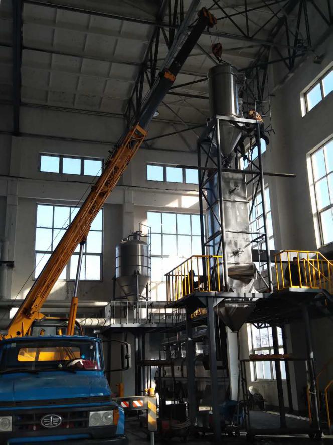 采用正壓氣力輸送將物料由雙錐干燥機送至冷卻降溫倉,冷卻料倉由風機在切線方向向內鼓風,輔助物料熱風交換,料倉內部采用網板折流結構,最大限度延長物料在料倉內的折流時間,使每一粒可以充分完成熱交換。從而達到降溫目的。考慮到用戶生產地處東北,季節(jié)性溫差較大,顧鼓風機采用變頻調節(jié)風量,提高其使用效率。